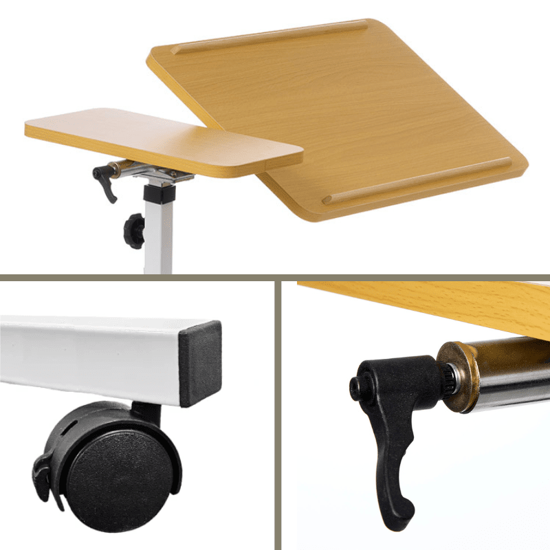 Dieser flexible Nachttisch ist ideal sowohl für das Bett als auch für den Rollstuhl. Mit 4 schwenkbaren Rädern, die alle arretierbar sind, lässt sich der Tisch problemlos bewegen und genau dort platzieren, wo du ihn brauchst.