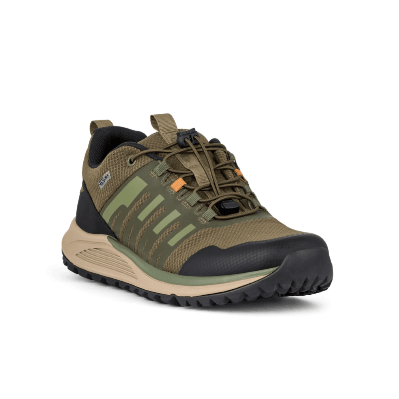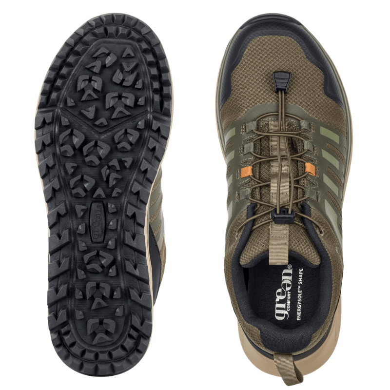 Let og rummelig green Comfort herresko i olivengrøn med en overdel i åndbar tekstil og mesh, som sikrer god ventilation og komfort. Skoen har elastiske snørebånd med hurtig-lås, så du nemt kan tilpasse pasformen.
