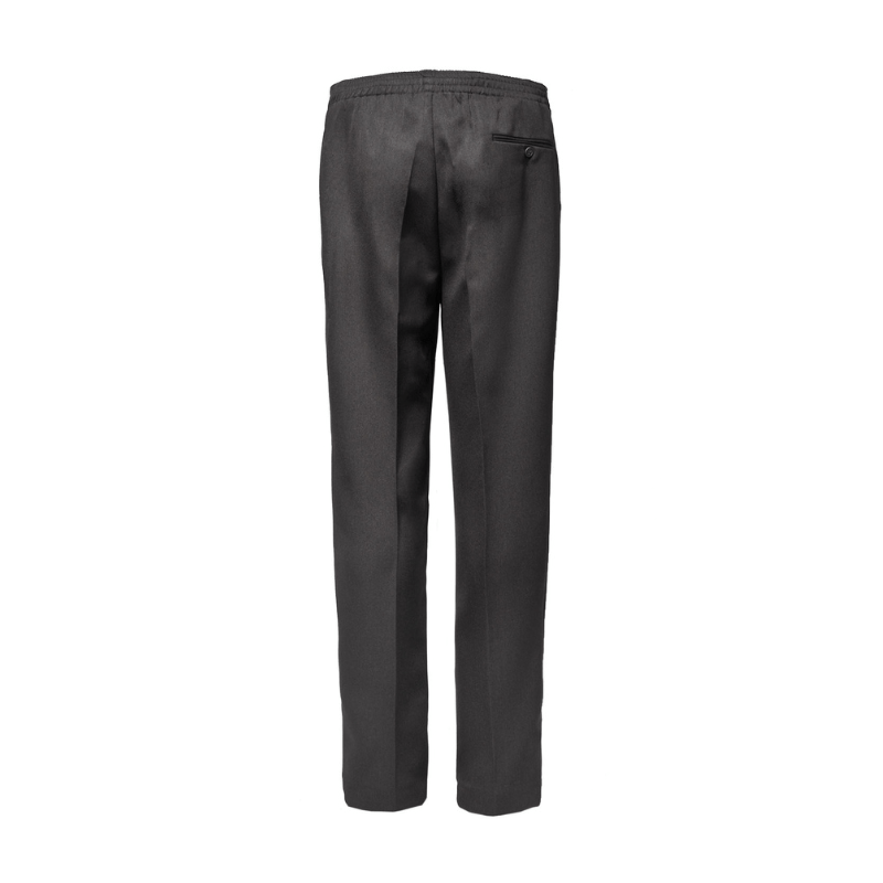Den bløde elastiklinning hele vejen rundt sikrer en behagelig pasform, der følger kroppens bevægelser uden at stramme. Bukserne har en pressefold foran, som giver et pænt og klassisk udtryk, og de kan nemt bruges både til hverdag og pænere anledninger.