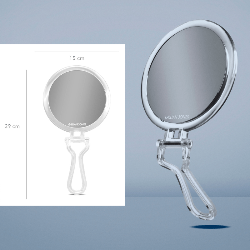 Der Spiegel kann als Handspiegel mit 1-facher und 7-facher Vergrößerung verwendet werden. Du kannst den Spiegel mithilfe des Lochs im Griff an die Wand hängen oder den Griff "falten" und den Spiegel im Winkel auf dem Tisch aufstellen. Der Spiegel hat einen Durchmesser von 15,5 cm.