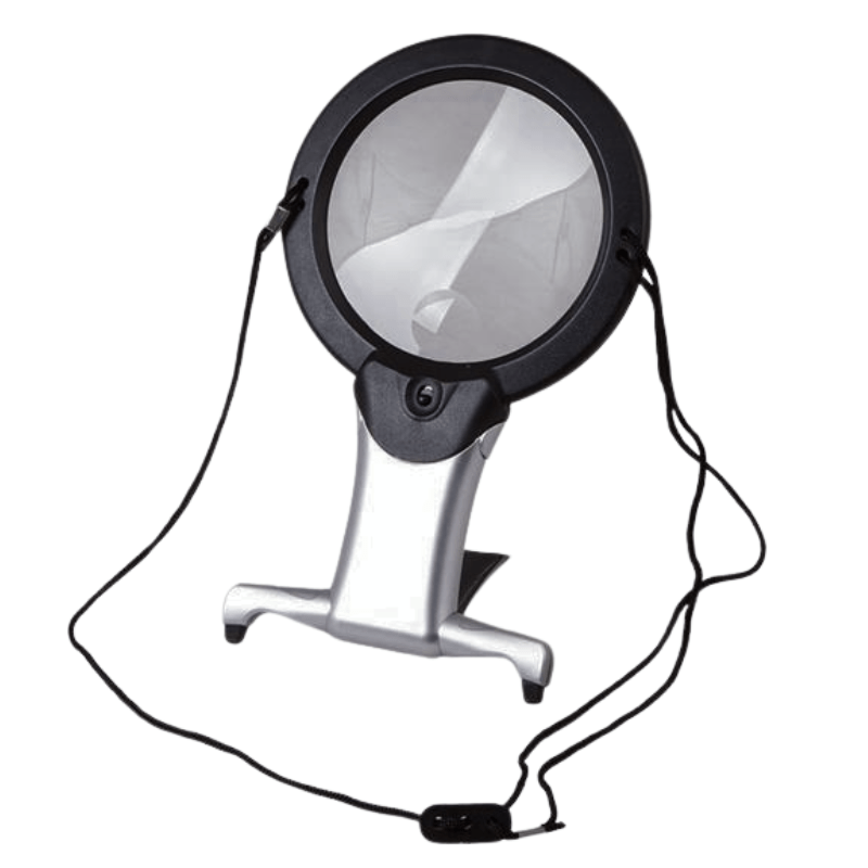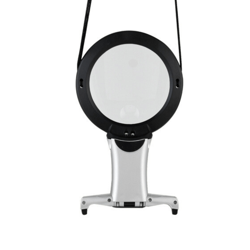 Diese Lupenbrille mit Schnur kannst du bequem um den Hals hängen, freihändig benutzen oder auch einfach auf den Tisch stellen. Sie verfügt über einen verstärkten Nackenriemen und ein stabiles Tischgestell – so bleibt deine Lupe immer dort, wo du sie brauchst. Dazu kommen ein flexibler Kopf, eine bifokale Linse und integrierte LED-Beleuchtung.
