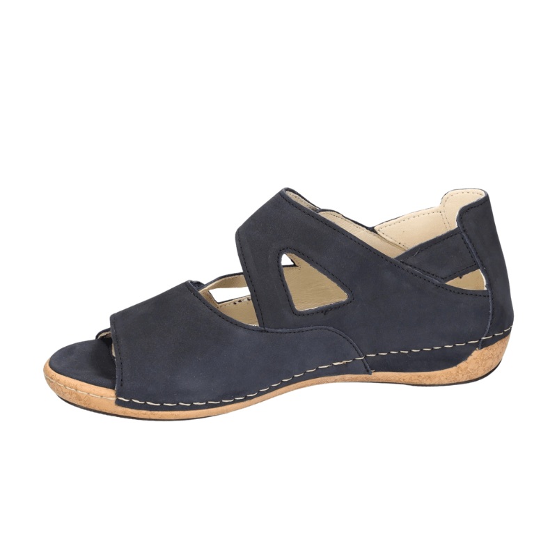 Blaue Waldläufer Damen-Sandale mit Obermaterial aus weichem Nubukleder, das den Füßen atmen lässt und den ganzen Tag über Komfort bietet.