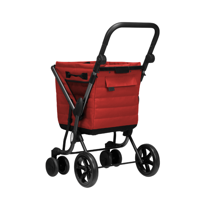 Der Einkaufswagen hat doppelte schwenkbare Vorderräder, die ihn besonders leicht und flexibel handhabbar machen - auch wenn der Korb voll ist. Der clevere Griff mit weicher Schaumstoffpolsterung ist sowohl rutschfest als auch angenehm zu greifen und in der Höhe verstellbar.